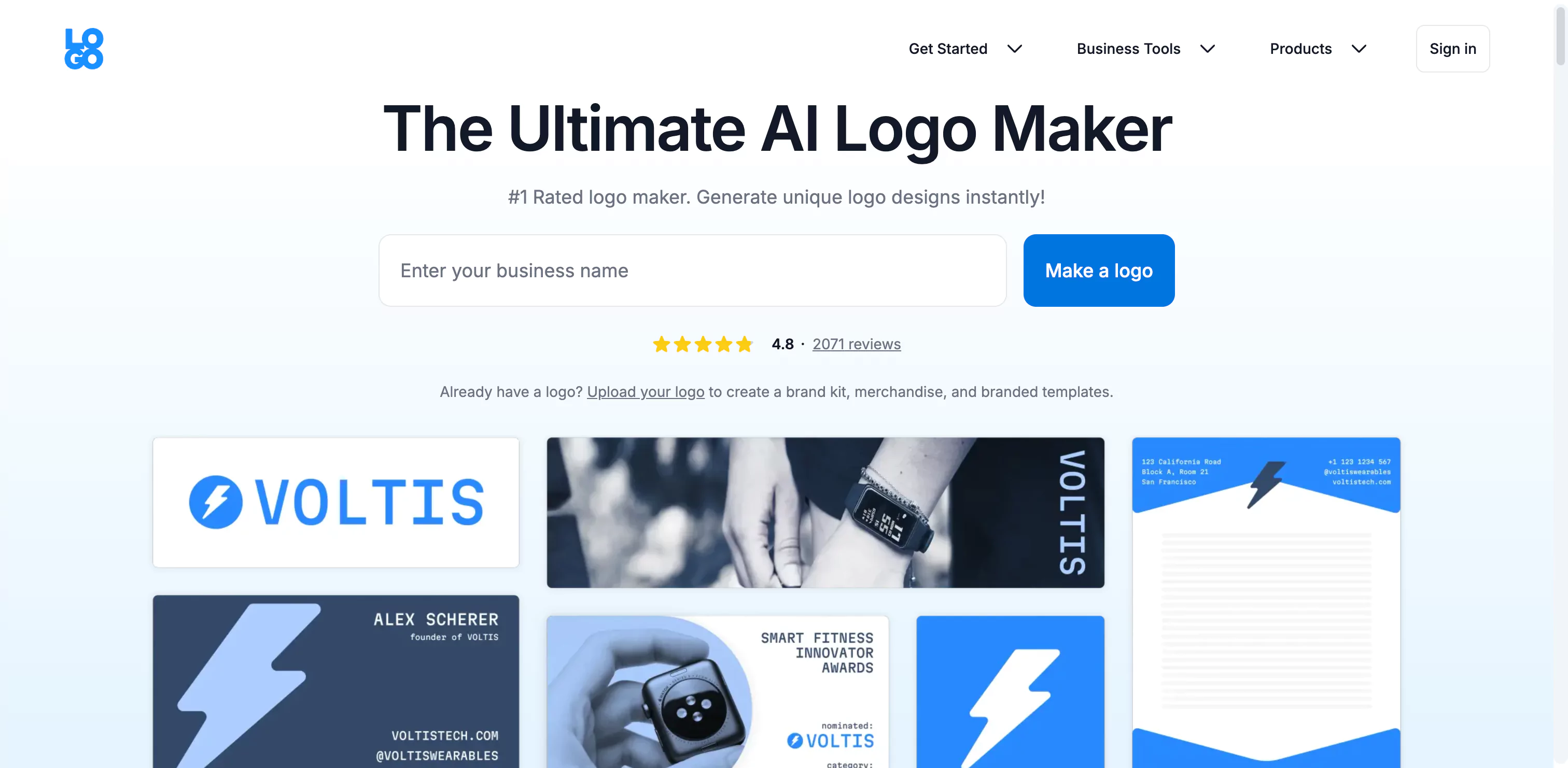 Logo.com is positioned as a free AI logo generator for users who want a quick logo.