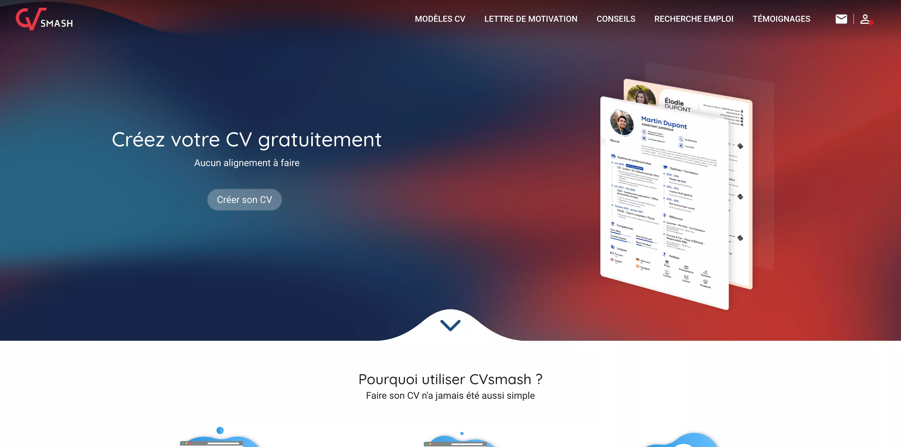 CVsmash incarne l’efficience dans la création de CV : rapide, stylé, intuitif, un vrai coup de pouce pour se concentrer sur le contenu plutôt que sur la forme.