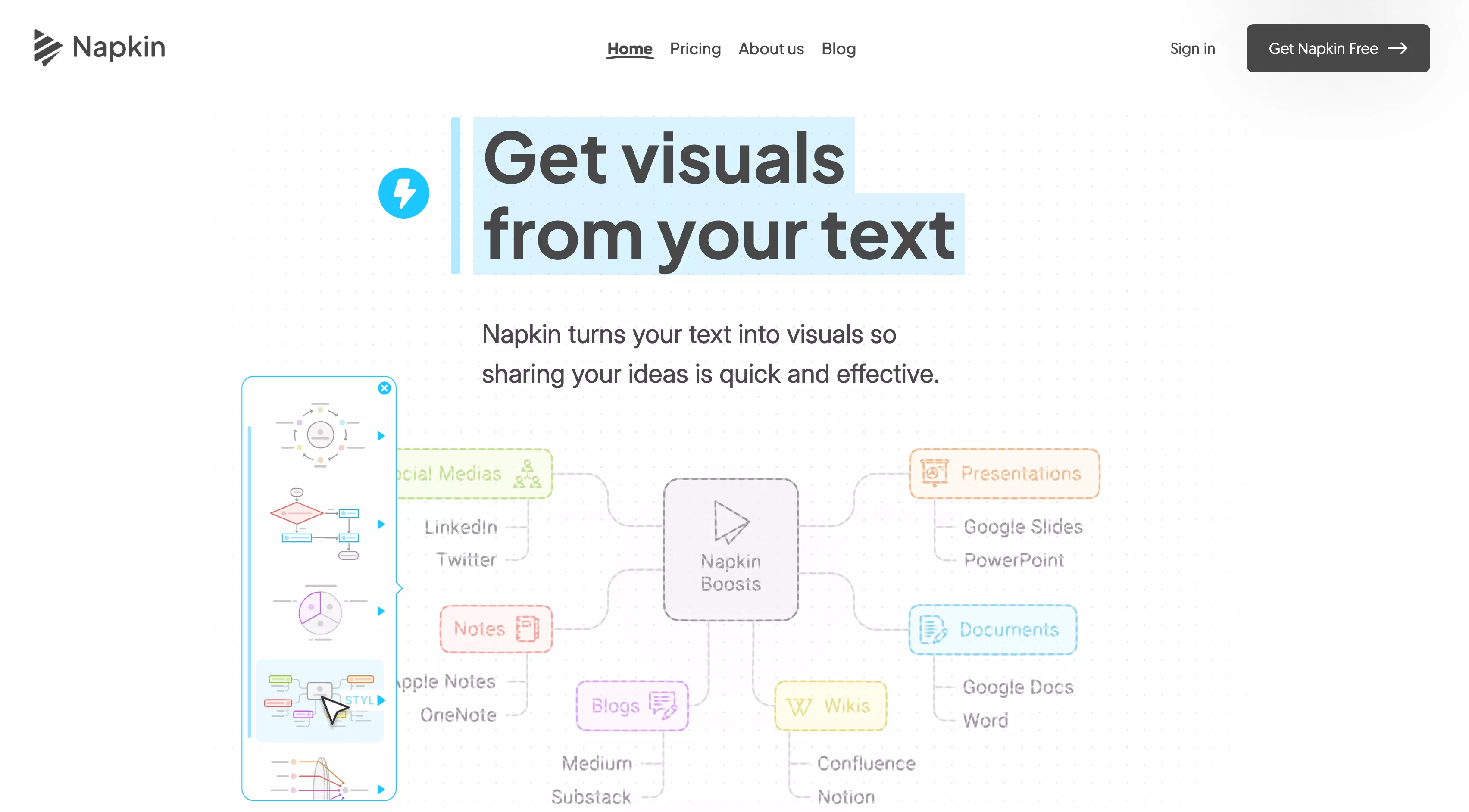 Napkin AI transforme automatiquement votre texte en visuels (diagrammes, schémas, graphiques, flows) éditables, pour illustrer vos idées de façon rapide, claire et esthétique.
