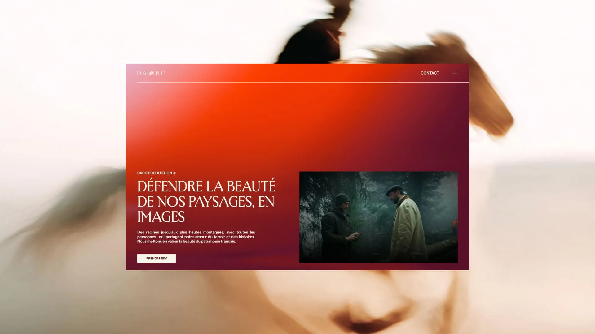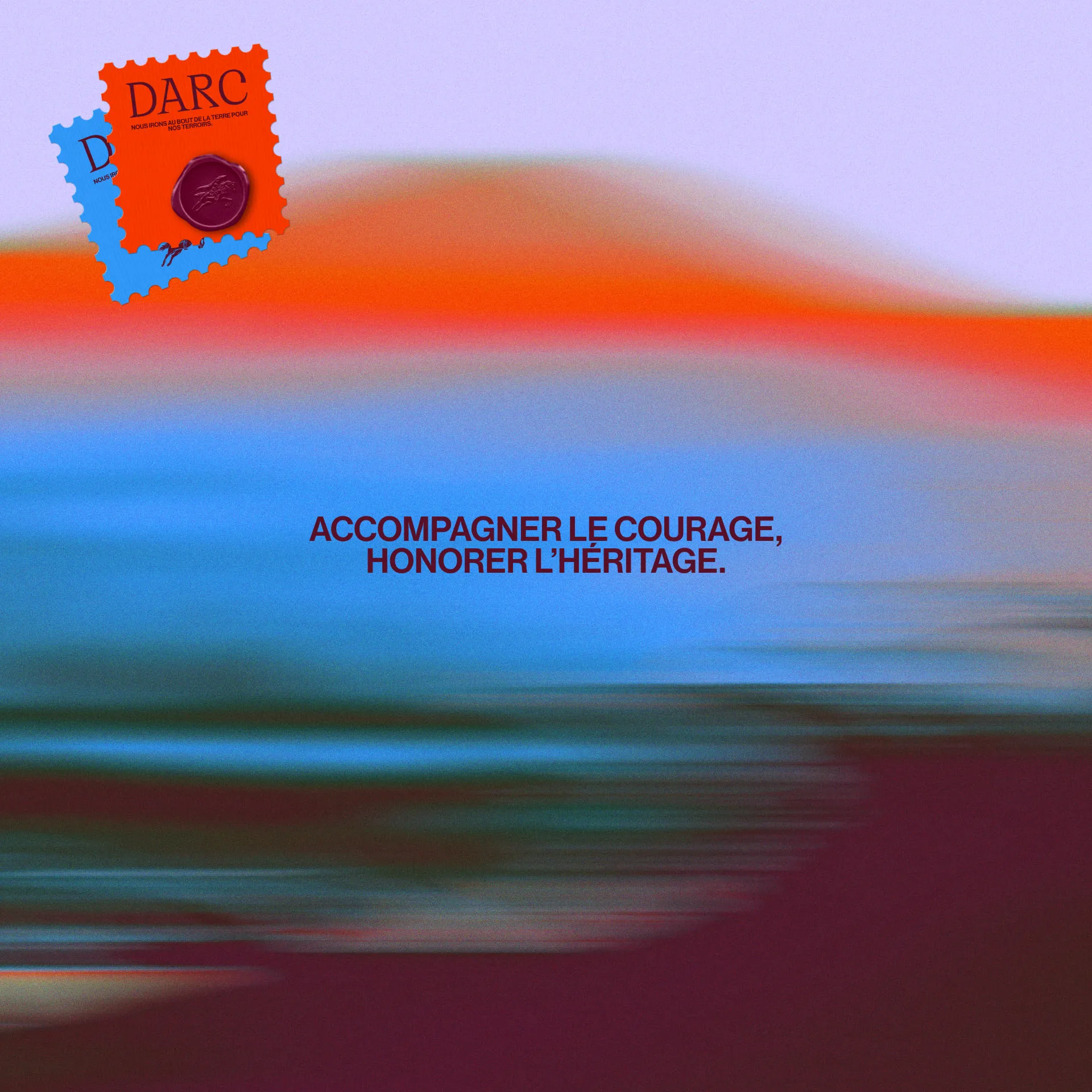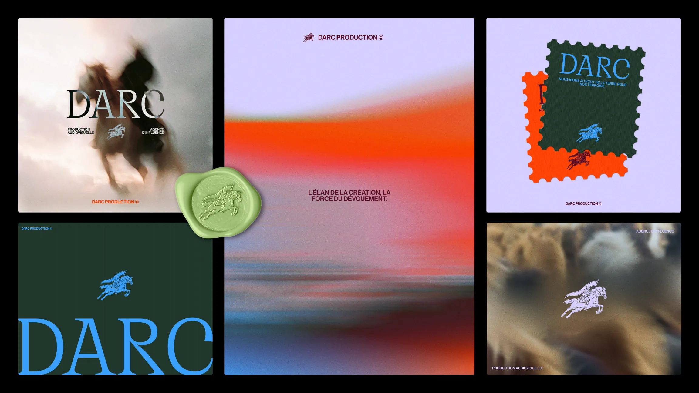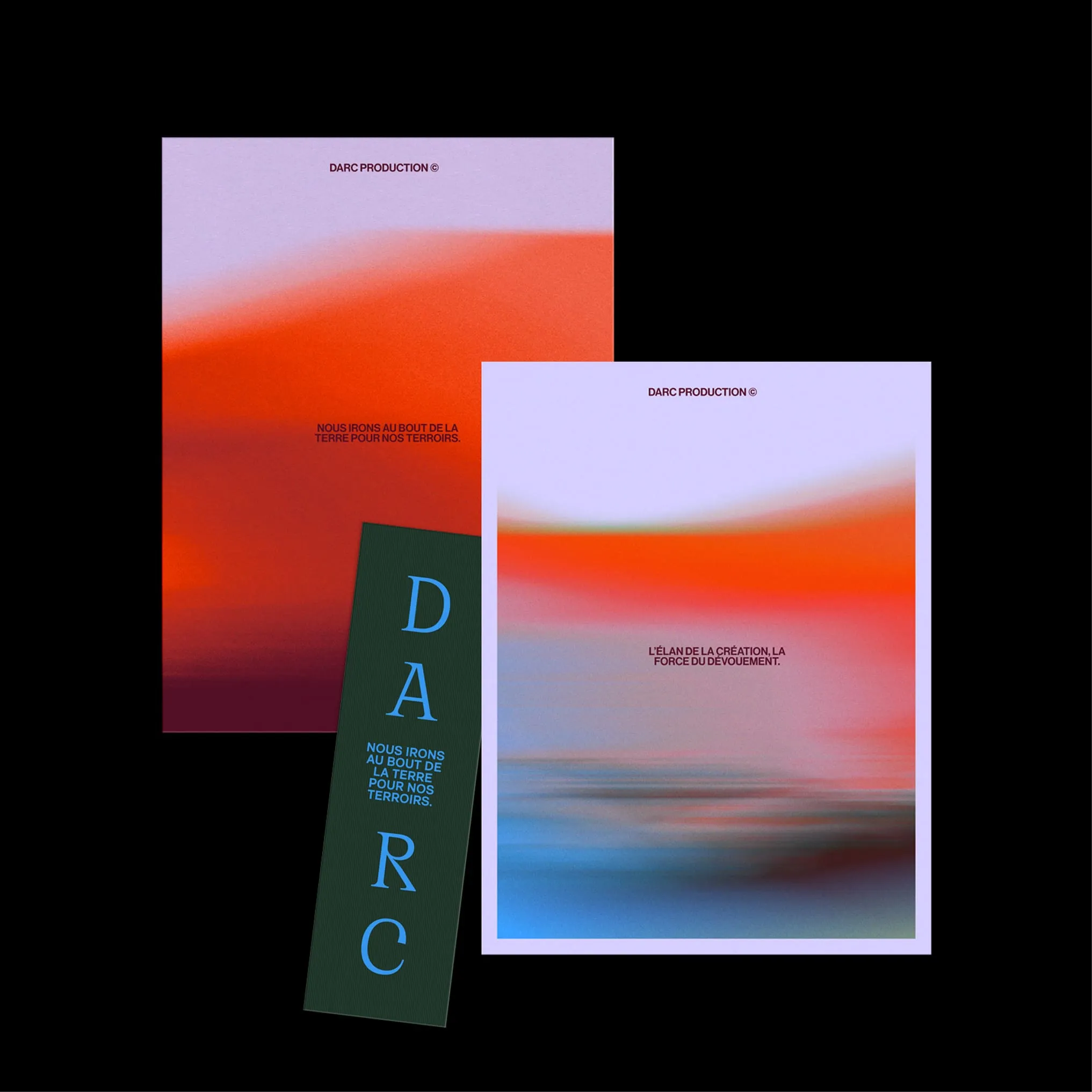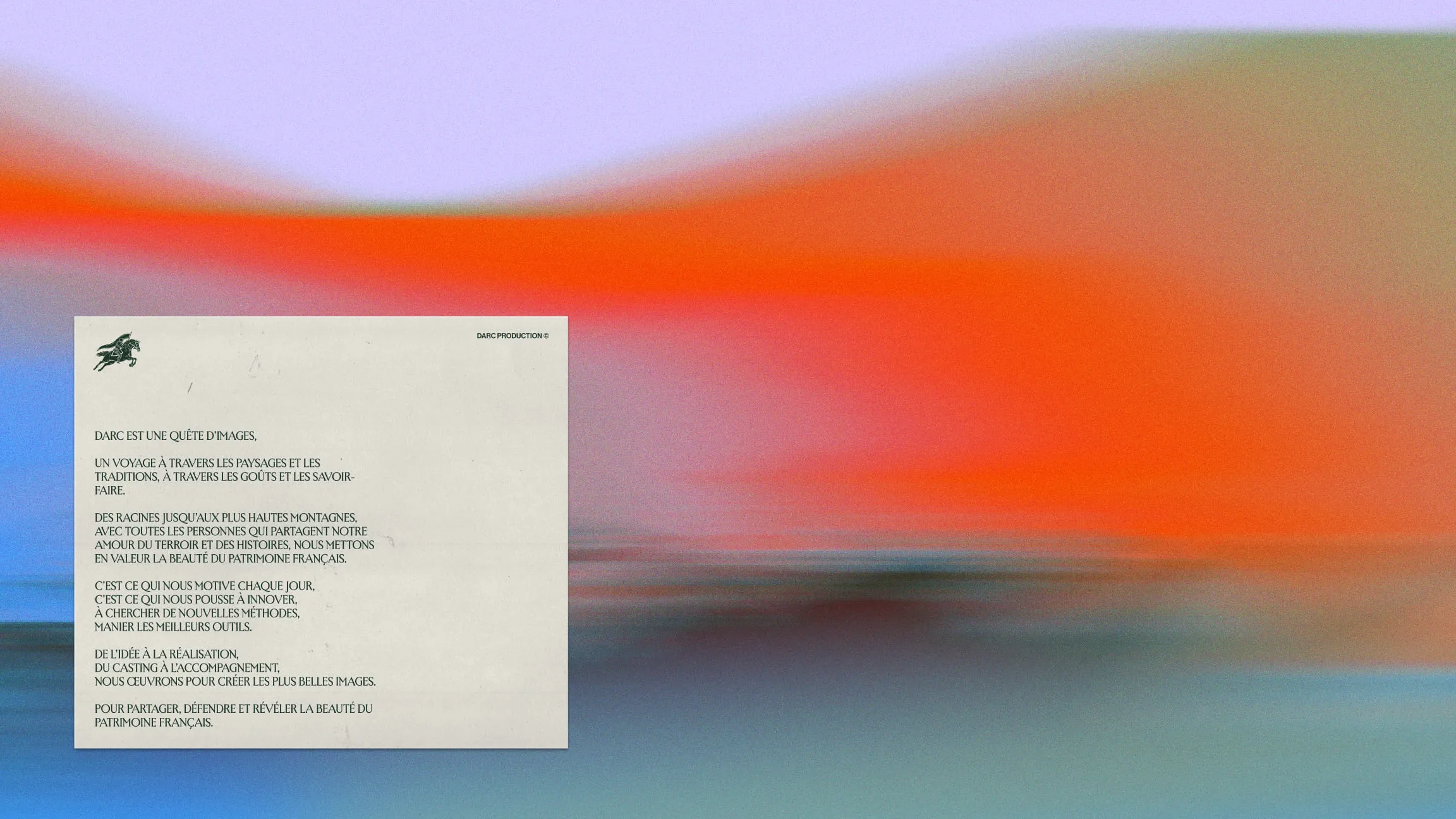 Darc vient de Jeanne d'Arc — figure de bravoure, d'authenticité, de mission. Quête des images justes, quête de sublimer le patrimoine français, quête de croissance. Nous avons construit le territoire autour de ces valeurs : authenticité contre artifice, courage créatif contre frilosité, élégance contre bavardage visuel. L'héroïsme tranquille de celle qui sait où elle va. Un positionnement qui évite les pièges du secteur — cool superficiel, jeunisme forcé — pour affirmer substance et ambition.