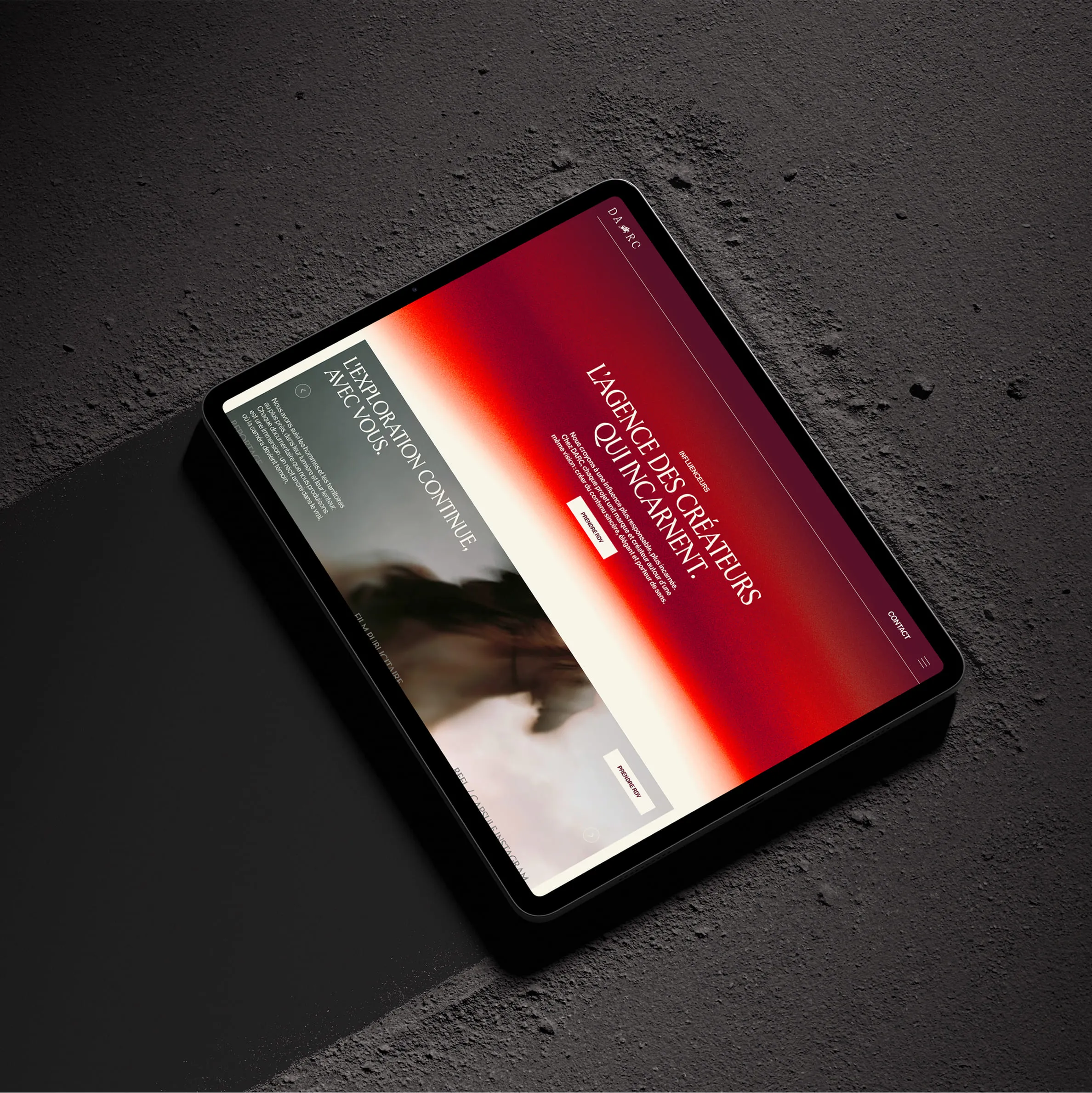 Le lancement conditionnait tout. Darc débarquait sur un marché saturé — agences d'influence, studios de prod, acteurs hybrides. L'ambition : rejoindre immédiatement "la cour des grands", s'imposer comme référence premium dès le départ. Cela exigeait une identité solide, magnétique, qui attire l'œil et génère désirabilité instantanée. Pas question d'émerger progressivement : il fallait arriver fort, projeter maturité et excellence, installer crédibilité immédiate. L'image devenait arme concurrentielle stratégique.