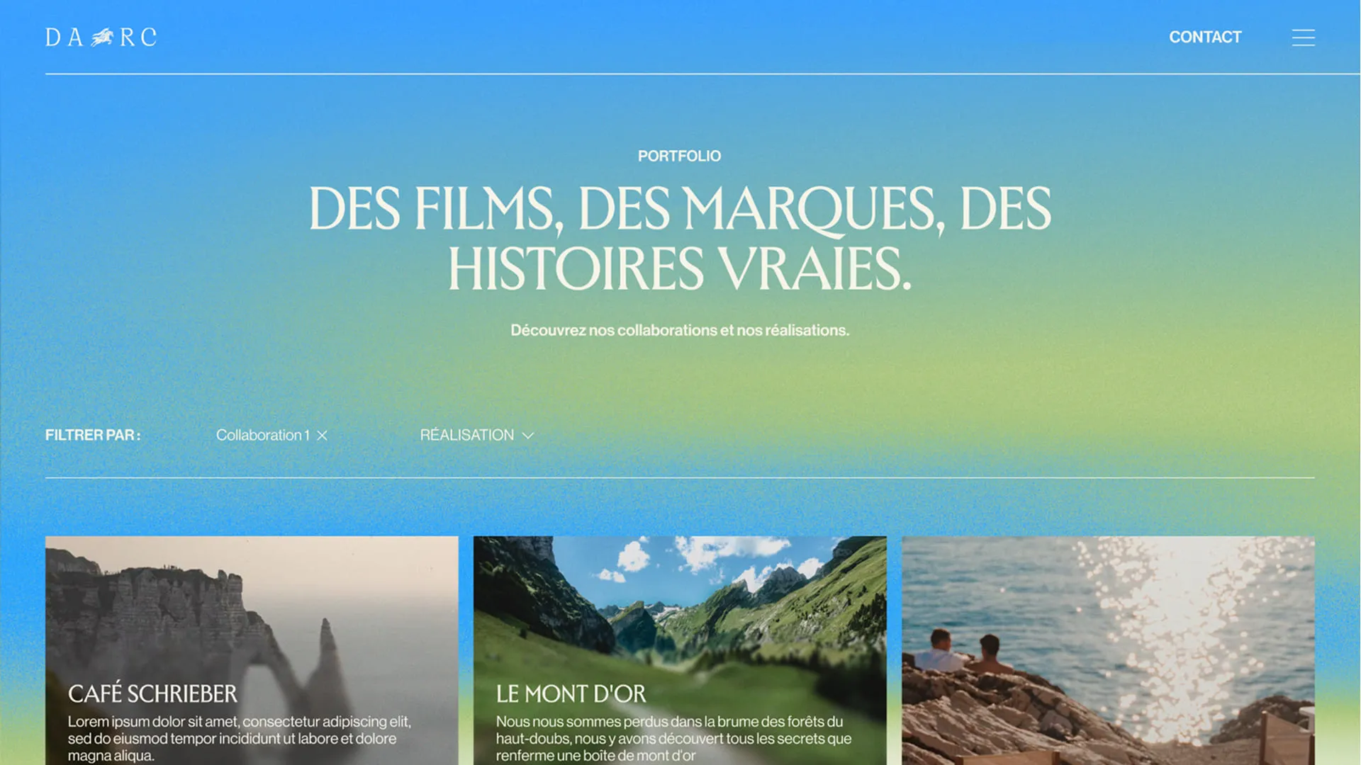 Nous avons pris Darc de zéro jusqu'au lancement opérationnel. Positionnement stratégique, identité verbale structurée, identité visuelle distinctive, puis conception et intégration du site internet. Chaque élément de marque a été travaillé pour incarner la quête : ton éditorial affirmé, système graphique élégant, expérience web immersive. L'agence disposait d'un écosystème complet, cohérent, prêt à conquérir. Pas de phase de rodage — Darc naissait armée.
